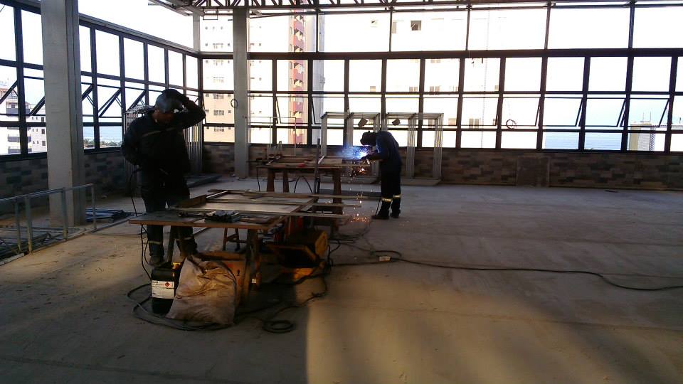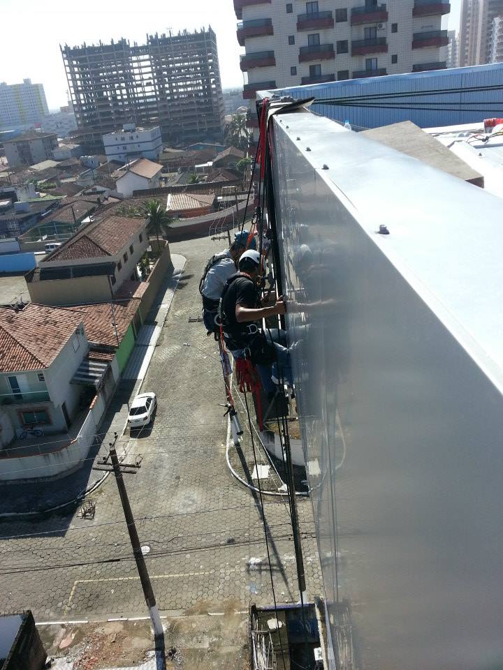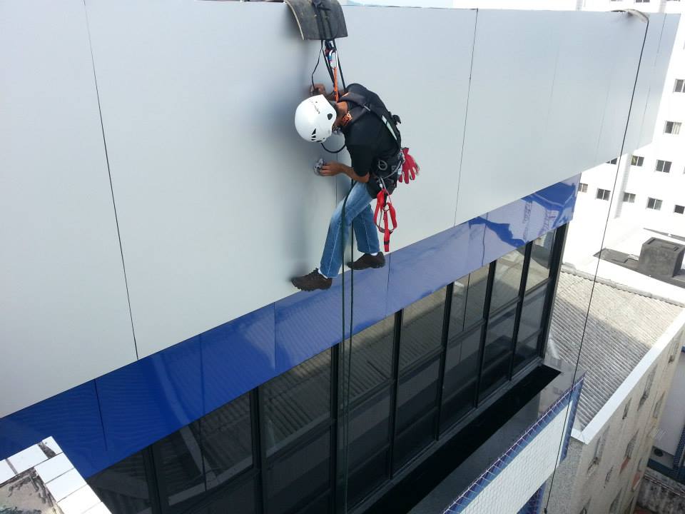 montagem de fachada de vidro e ACM